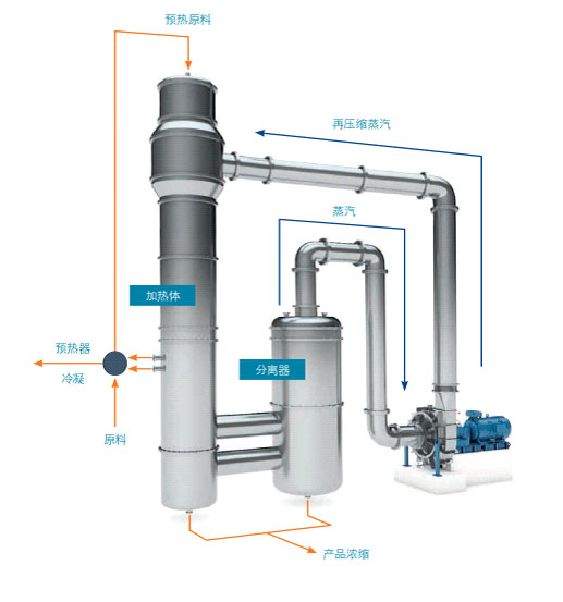 MVR蒸發(fā)技術(shù)能耗相當(dāng)于十效蒸發(fā)器,從理論上看,使用MVR蒸發(fā)器比傳統(tǒng)蒸發(fā)器節(jié)省80%以上的能源,節(jié)省90%以上的冷凝水,節(jié)省60%以上的占地面積.樂元能采用的高速電機(jī)直聯(lián)技術(shù)更比齒輪增速離心式壓縮機(jī)節(jié)能20%以上。